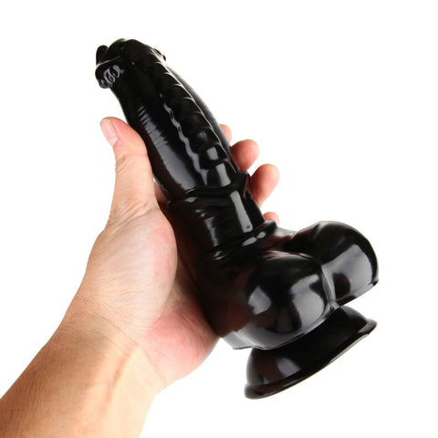 This Anal Dildo has a large suction base with a shaft that looks like a reptile . It features balls and ribbing for greater stimulation and comes in black.
