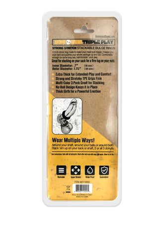Extra thick and comfortable the D-Ring X3 contains the 3 perfect size donut rings. Each kit contains a black, clear, and smoke colored ring, intended to be worn around cock, balls or both. They are made of super strong and stretchy TPE and are phthalate free. The D-Ring X3 are soft, stretchy, easy to get on, and help you keep a firm and hard erection.