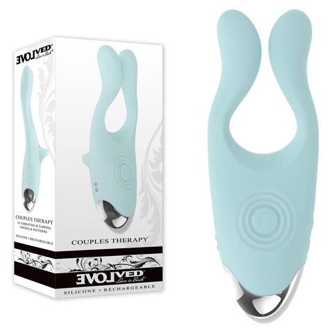 Get creative with the only Couples Therapy that features two vibrating antennae and a throbbing, tapping spot! Powerful vibrations emanate from the curvy, flexible feelers as they form a circular opening that creates a buzzy embrace of its own. The stretchy finger loop at the toy's center provides agile, secure navigation. - Made from phthalate & latex-free silicone & ABS - 10 vibrating speeds & patterns in each antennae - 10 tapping speeds & patterns in base - 3 motors - one in each antennae, one in base - Height: 16.5 cm, Depth: 4.6 cm, Width: 5.8 cm - Insertable length: 8.3 cm; diameter (per antennae) 2.2 cm - USB magnetic rechargeable, cable included - Waterproof