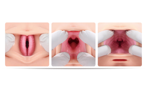 Internal cross-sectional view of vagina insertion: G-spot nubs + water drop nubs + multi-dimensional curve, crease of vaginal cuff: The wrinkles of vaginal cuff and tightening are realistic. G-spot: Stimulating structure that describe inside the aroused vagina, narrower towards one end: The design offers greater satisfaction from deep inside.