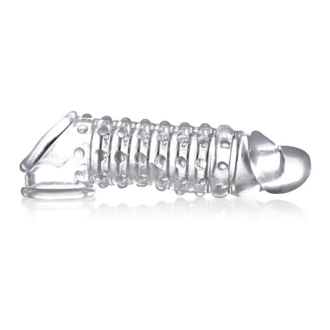 Add length and girth with this super soft enhancer sleeve! This bumpy sleeve is soft and flexible for a snug yet comfortable hug on your package. Externally textured with bumps and ridges to tantalize your lovers insides with internal texturing for your own pleasure. This enhancer sleeve is perfect for couples who want to experiment with a bigger shaft without discomfort and as soon as the mood strikes!