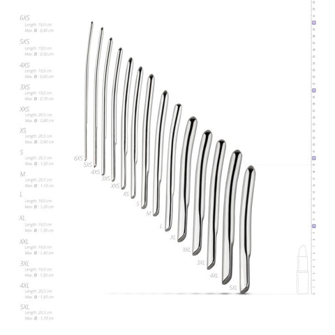 Go for endless pleasure with this complete dilator set. This set consists of 14 dilators with different gradient diameters: 17mm, 16mm, 15mm, 14mm, 13mm, 12mm, 11mm, 10mm, 9mm, 8mm, 7mm, 6mm, 5mm and 4mm.