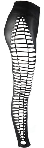 Elegant and super sexy stretch wetlook leggings for that special moment. The slashed side cut outs further enhance the provocative nature of this exquisite piece.